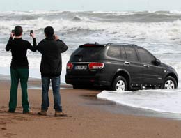 Antalya'da sabah saatlerinde etkili olan fırtında, Lara sahiline 34 LLN 88 plakalı cip vurdu. Cip, sahilde yürüyüşe çıkanlar tarafından fark edildi.